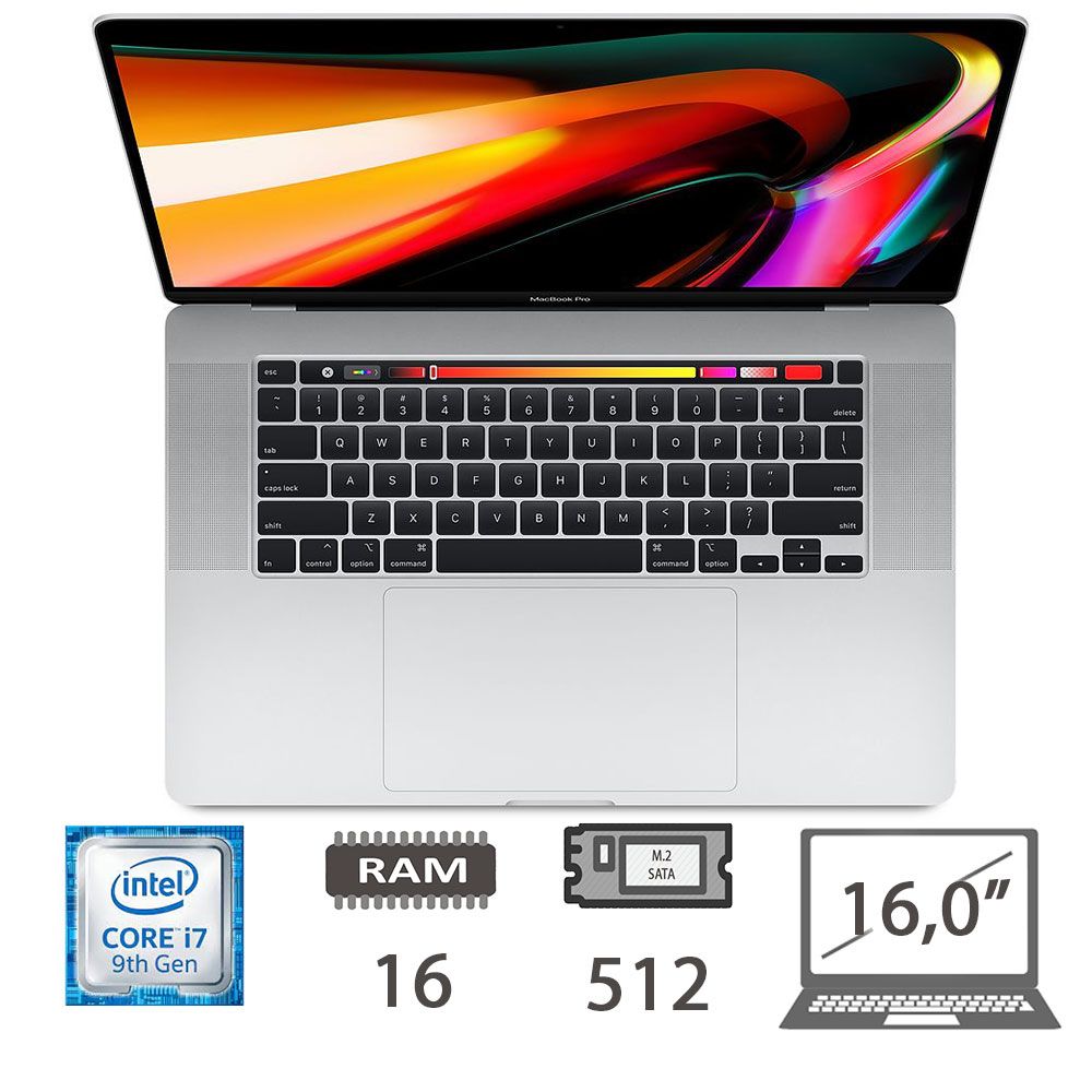 MacBook Pro 16 T.Bar(2019)i7-9750H- 2,60Ghz/16/512 M2-SATA/UHD630/RP5300M(4GB)/MacOs/Silver/2Y