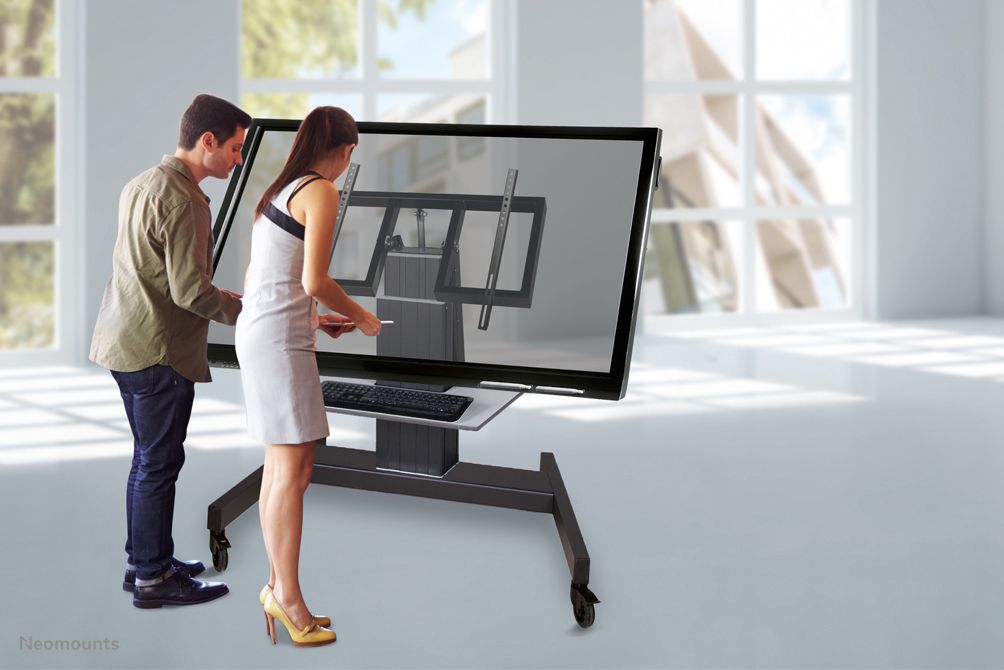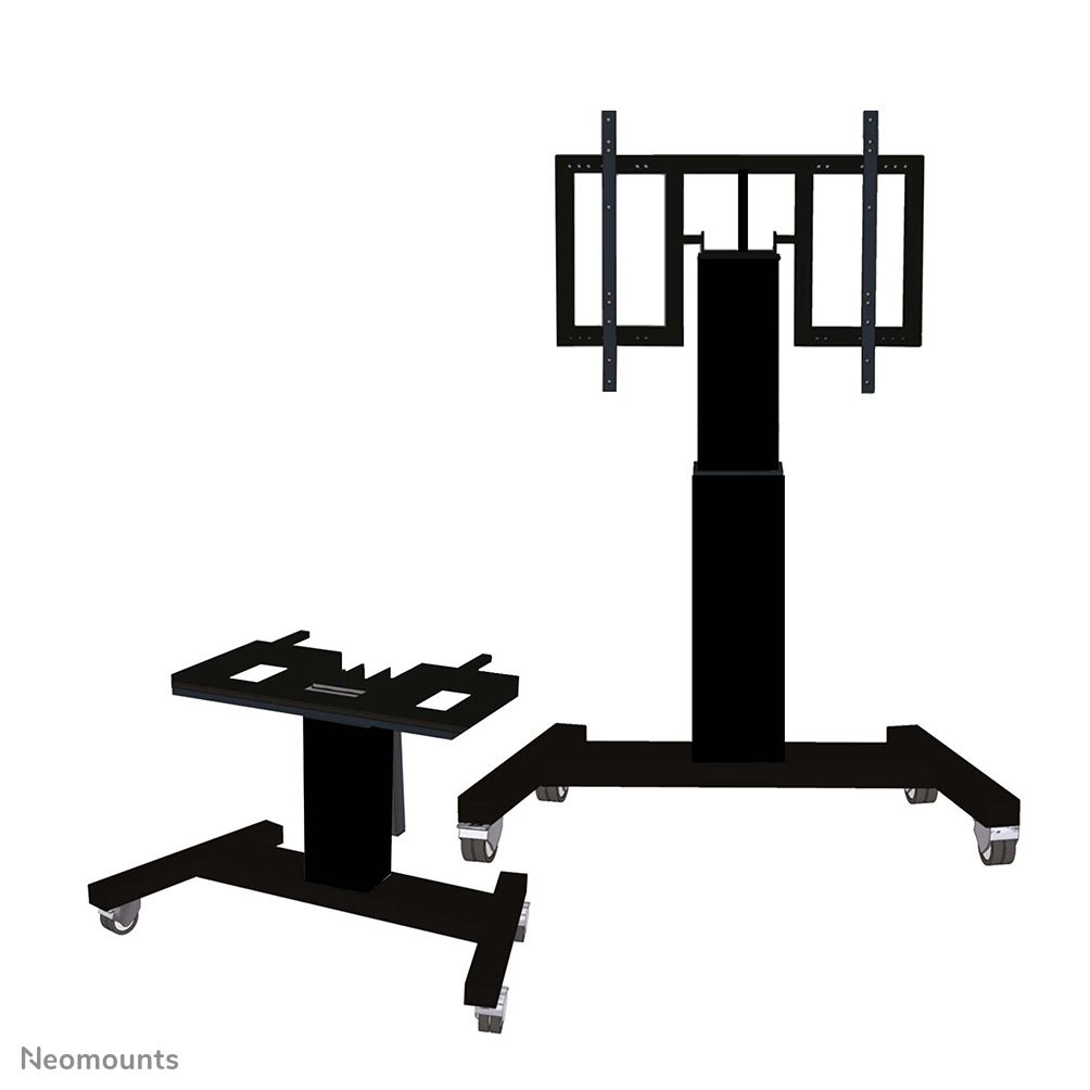 Neomounts Mobiletto portatile per TV. Peso massimo (capacità): 150 kg, Capienza minima dimensioni dello schermo: 106,7 cm (42"), Capienza massima dimensioni dello schermo: 2,54 m (100"), Compatibilità interfaccia di montaggio (min): 200 x 200 mm, Compatibilità interfaccia di montaggio (max): 800 x 600 mm. Regolazione altezza, Inclinazione: 0 - 90°. Colore del prodotto: Nero