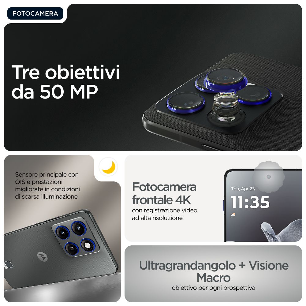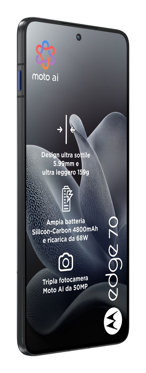 Motorola edge 70 12/512 GADGET GREY. Dimensioni diagonale schermo: 17 cm (6.7"), Risoluzione del display: 2712 x 1220 Pixel. Famiglia processore: Snapdragon, Modello del processore: 7 Gen 4. Capacità della RAM: 12 GB, Tipo di RAM: LPDDR5X, Capacità memoria interna: 512 GB. Risoluzione fotocamera posteriore (numerico): 50 MP, Tipo di fotocamera posteriore: Doppia fotocamera. Capacità della scheda SIM: Doppia SIM. Sistema operativo incluso: Android 16.0. Capacità della batteria: 4800 mAh. Colore del prodotto: Grigio. Peso: 159 g