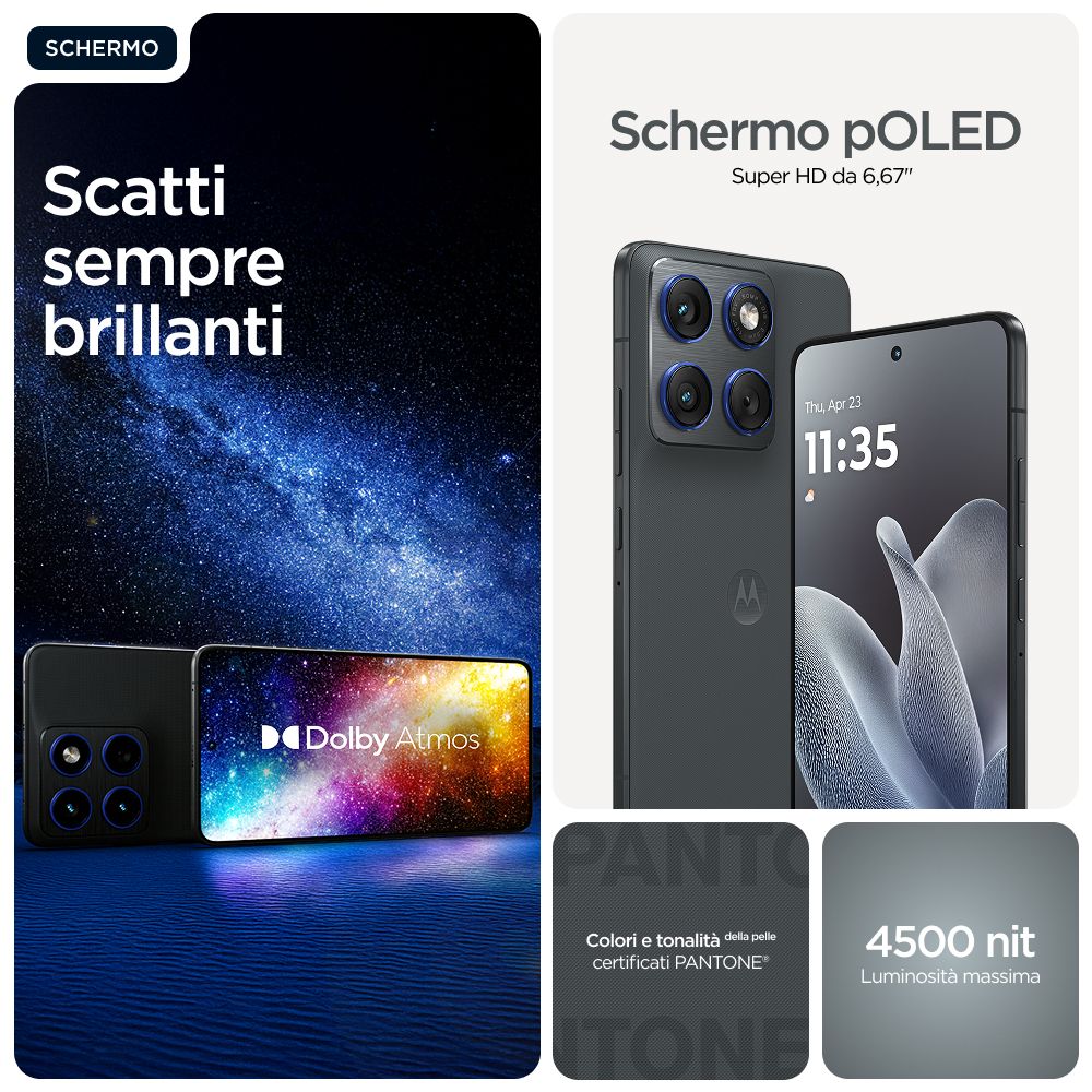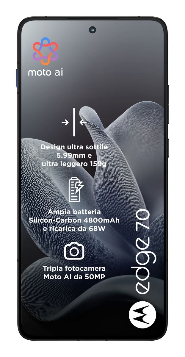 Motorola edge 70 12/512 GADGET GREY. Dimensioni diagonale schermo: 17 cm (6.7"), Risoluzione del display: 2712 x 1220 Pixel. Famiglia processore: Snapdragon, Modello del processore: 7 Gen 4. Capacità della RAM: 8 GB, Tipo di RAM: LPDDR5X, Capacità memoria interna: 256 GB. Risoluzione fotocamera posteriore (numerico): 50 MP, Tipo di fotocamera posteriore: Doppia fotocamera. Capacità della scheda SIM: Doppia SIM. Sistema operativo incluso: Android 16.0. Capacità della batteria: 4800 mAh. Colore del prodotto: Grigio. Peso: 159 g