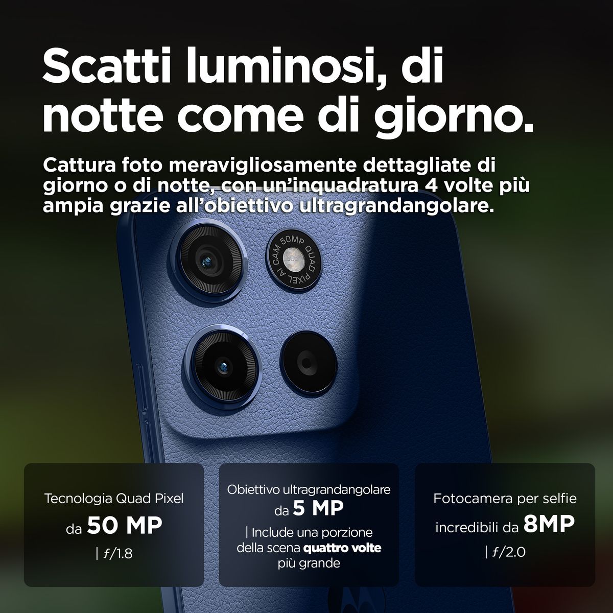 Motorola moto g15. Dimensioni diagonale schermo: 17,1 cm (6.72"), Risoluzione del display: 2400 x 1080 Pixel. Frequenza del processore: 2 GHz, Famiglia processore: MediaTek, Modello del processore: Helio G81 Extreme. Capacità della RAM: 8 GB, Tipo di RAM: LPDDR4X, Capacità memoria interna: 256 GB. Risoluzione fotocamera posteriore (numerico): 50 MP, Tipo di fotocamera posteriore: Doppia fotocamera. Capacità della scheda SIM: Doppia SIM. Sistema operativo incluso: Android 15. Capacità della batteria: 5200 mAh. Colore del prodotto: Blu marino. Peso: 190 g