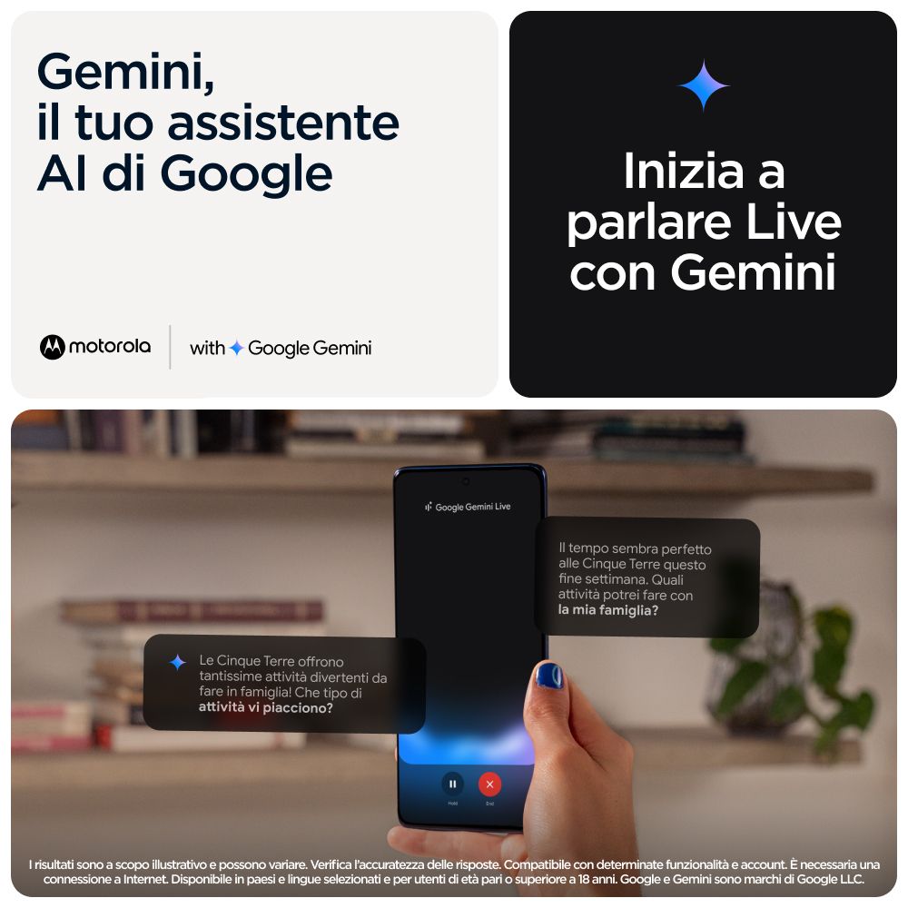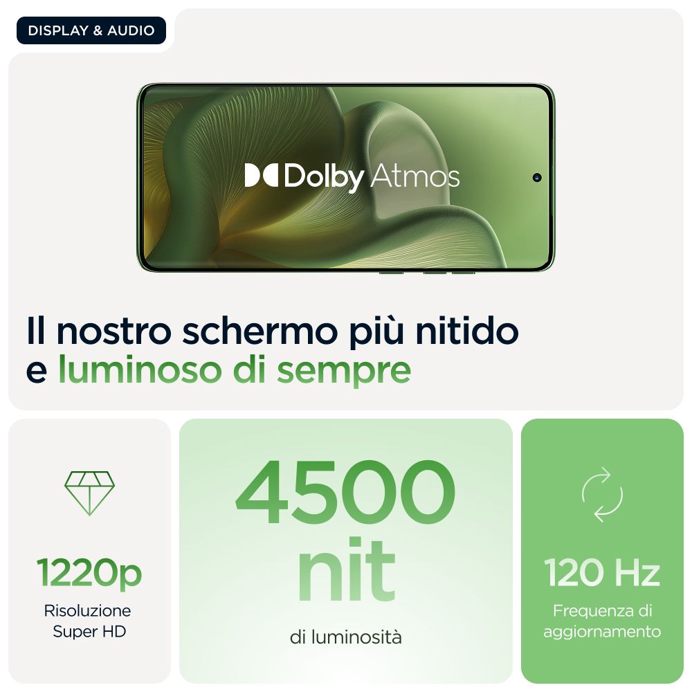 Motorola edge 60 con Moto AI (8/256GB, Fotocamera 50+50+10MP, selfie 50MP, Display 6.67" pOLED 120Hz, MediaTek Dimensity 24M, batteria 5200mAh, ricarica 68W, Android 15), PANTONE Shamrock. Dimensioni diagonale schermo: 16,9 cm (6.67"), Risoluzione del display: 2712 x 1220 Pixel. Famiglia processore: MediaTek Dimensity, Modello del processore: 7300. Capacità della RAM: 8 GB, Tipo di RAM: LPDDR4X, Capacità memoria interna: 256 GB. Risoluzione fotocamera posteriore (numerico): 50 MP, Tipo di fotocamera posteriore: Tripla fotocamera. Capacità della scheda SIM: Doppia SIM. Sistema operativo incluso: Android 15. Capacità della batteria: 5200 mAh. Colore del prodotto: Verde. Peso: 179 g
