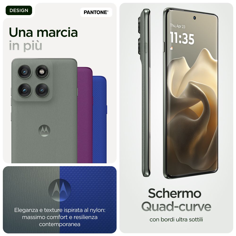 Motorola edge 60 pro con Moto AI (12/512GB, Fotocamera 50+50+10MP, selfie 50MP, Display 6.67" pOLED 120Hz, MediaTek Dimensity 8350, batteria 6000mAh, ricarica 90W, Android 15), PANTONE Shadow. Dimensioni diagonale schermo: 16,9 cm (6.67"), Risoluzione del display: 2712 x 1220 Pixel. Famiglia processore: MediaTek Dimensity, Modello del processore: 8350. Capacità della RAM: 12 GB, Tipo di RAM: LPDDR5X, Capacità memoria interna: 512 GB. Risoluzione fotocamera posteriore (numerico): 50 MP, Tipo di fotocamera posteriore: Tripla fotocamera. Capacità della scheda SIM: Doppia SIM. Sistema operativo incluso: Android 15. Capacità della batteria: 6000 mAh. Colore del prodotto: Grigio. Peso: 186 g