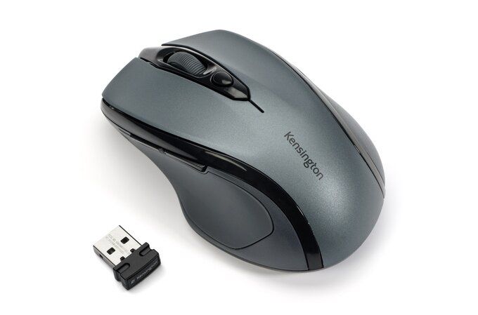 Kensington Mouse wireless Pro Fit® di medie dimensioni - grigio grafite. Fattore di forma: Mano destra. Tecnologia di rilevamento del movimento: Ottico, Interfaccia dispositivo: RF Wireless, Risoluzione movimento: 1600 DPI, Tipo di pulsanti: Tasti premuti, Numero di tasti: 3, Tipo di scorimmento: Rotella. Alimentazione: Batterie. Colore del prodotto: Grigio