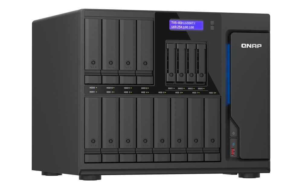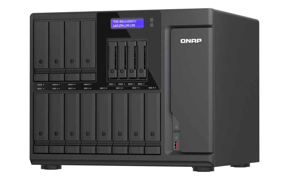 QNAP TVS-AIH1688ATX-U7-32G. Tipo: NAS. Tipo di case: Tower. Classe del dispositivo: Grandi Aziende. Memoria Interna: 32 GB, Tipo di RAM: DDR5. Capacità di archiviazione totale installata: 0 TB. Sistema operativo incluso: QuTS hero