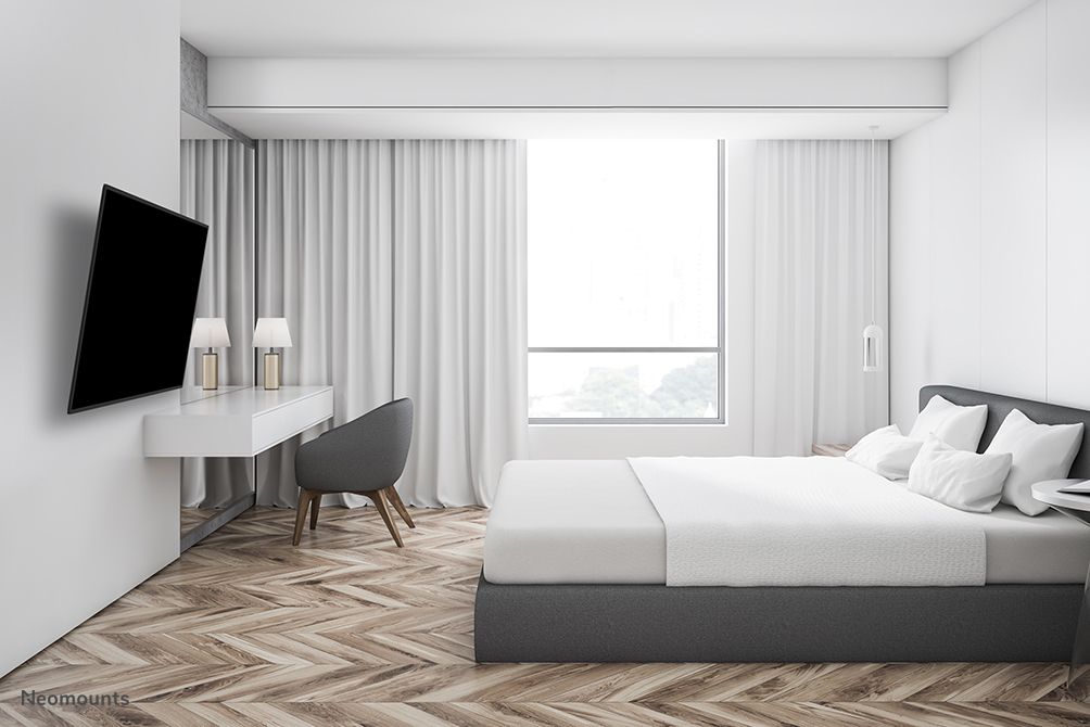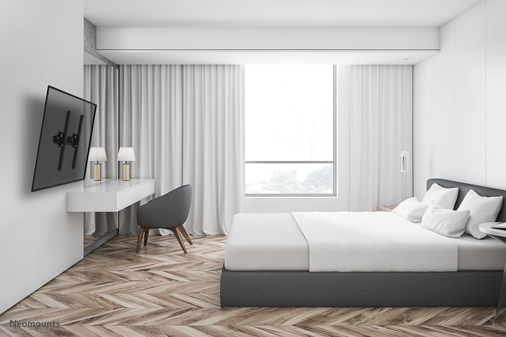 Neomounts supporto a parete per TV. Peso massimo (capacità): 35 kg, Capienza minima dimensioni dello schermo: 81,3 cm (32"), Capienza massima dimensioni dello schermo: 165,1 cm (65"), Compatibilità interfaccia di montaggio (min): 50 x 50 mm, Compatibilità interfaccia di montaggio (max): 400 x 400 mm. Inclinazione: -2 - 10°. Colore del prodotto: Nero