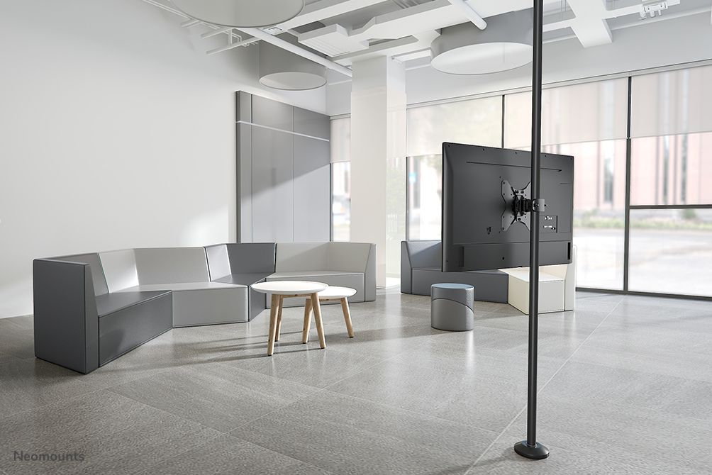 Neomounts supporto da palo per TV. Peso massimo (capacità): 25 kg, Capienza minima dimensioni dello schermo: 58,4 cm (23"), Capienza massima dimensioni dello schermo: 106,7 cm (42"), Compatibilità interfaccia di montaggio (min): 75 x 75 mm, Compatibilità interfaccia di montaggio (max): 200 x 200 mm. Inclinazione: 15 - 10°, Distanza dal muro (massima): 7,6 cm. Colore del prodotto: Nero
