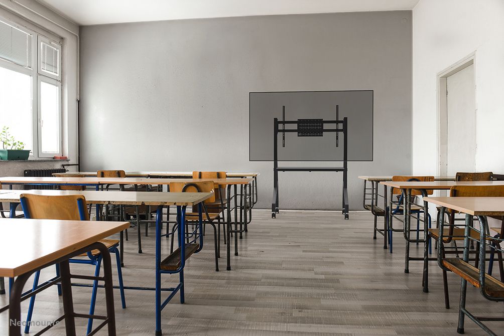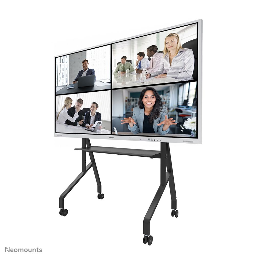 Neomounts supporto da pavimento. Tipo: Trolley multimediale, Colore del prodotto: Nero, Materiali: Acciaio. Altezza: 1500 mm, Regolazione altezza: 30 cm, Larghezza: 1100 mm. Larghezza imballo: 690 mm, Profondità imballo: 113 mm, Altezza imballo: 1444 mm. Larghezza scatola principale: 250 mm, Lunghezza del cartone principale: 335 mm, Altezza scatola principale: 490 mm. Peso netto del pacco: 25,5 kg