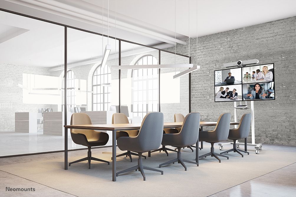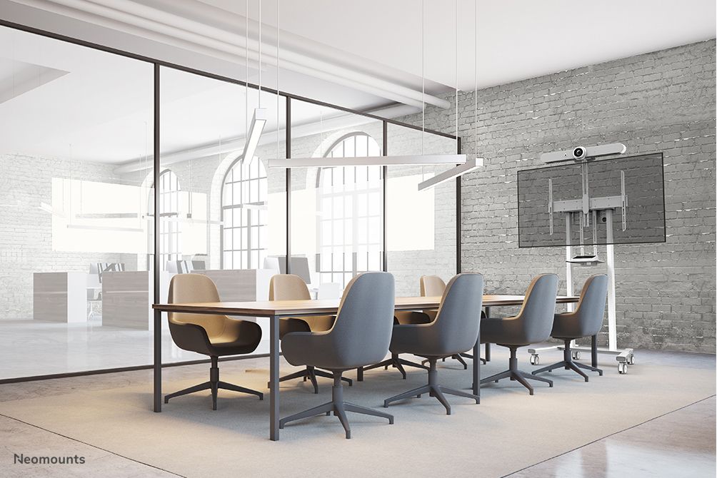 Neomounts supporto da pavimento motorizzato. Peso massimo (capacità): 110 kg, Capienza minima dimensioni dello schermo: 139,7 cm (55"), Capienza massima dimensioni dello schermo: 2,54 m (100"), Compatibilità interfaccia di montaggio (min): 100 x 100 mm, Compatibilità interfaccia di montaggio (max): 800 x 600 mm. Range di regolazione altezza: 115,2 - 180,2 mm. Colore del prodotto: Bianco