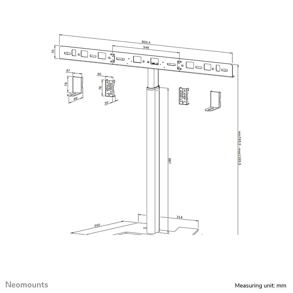 Neomounts AV80-500BL Supporto da pavimento per videobar - VESA - max 10 kg - universale. Tipo di prodotto: Supporto per videobar, Tipo di montaggio: Pavimento, Panel mounting interface 24/5000 Interfaccia per montaggio a pannello: 200 x 200,200 x 300,200 x 400,300 x 900,300 x 100,300 x 200,300 x 300,350 x 350,400 x 200,400 x.... Larghezza: 900 mm, Profondità: 362 mm, Altezza: 1264 mm. Larghezza imballo: 376 mm, Profondità imballo: 727 mm, Altezza imballo: 94 mm. Peso netto del cartone principale: 18,6 kg, Quantità europallet: 40 pz, Larghezza scatola principale: 205 mm