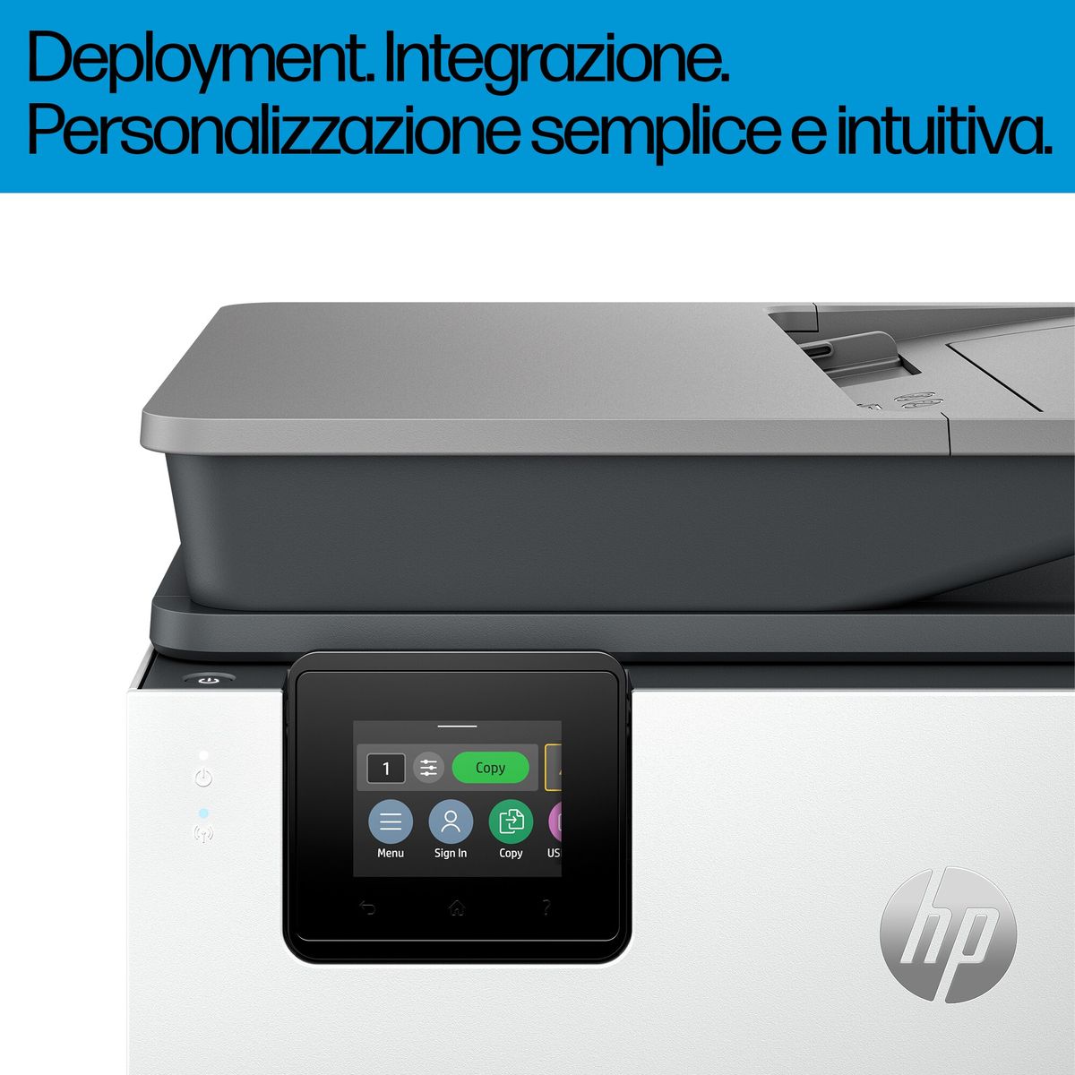 HP OfficeJet Pro Stampante multifunzione 9120b, Colore, Stampante per Abitazioni e piccoli uffici, Stampa, copia, scansione, fax, wireless; Stampa fronte/retro; scansione fronte/retro; Scansione verso e-mail; Scansione verso PDF; fax; porta unità flash USB anteriore; touchscreen; stampa da smartphone o tablet; Alimentatore automatico di documenti. Tecnologia di stampa: Getto termico d'inchiostro, Stampa: Stampa a colori, Risoluzione massima: 4800 x 1200 DPI, Velocità di stampa (colore, qualità normale, A4/US Letter): 16 ppm. Copia: Copia a colori, Risoluzione di copia massima: 600 x 600 DPI. Scansione: Scansione a colori, Risoluzione di scansione ottica: 1200 x 1200 DPI. Fax: Fax a colori. Funzione duplex: Stampa, Scansione, Fax. Massimo formato carta serie ISO A: A4. Wi-Fi. Stampa diretta. Colore del prodotto: Grigio