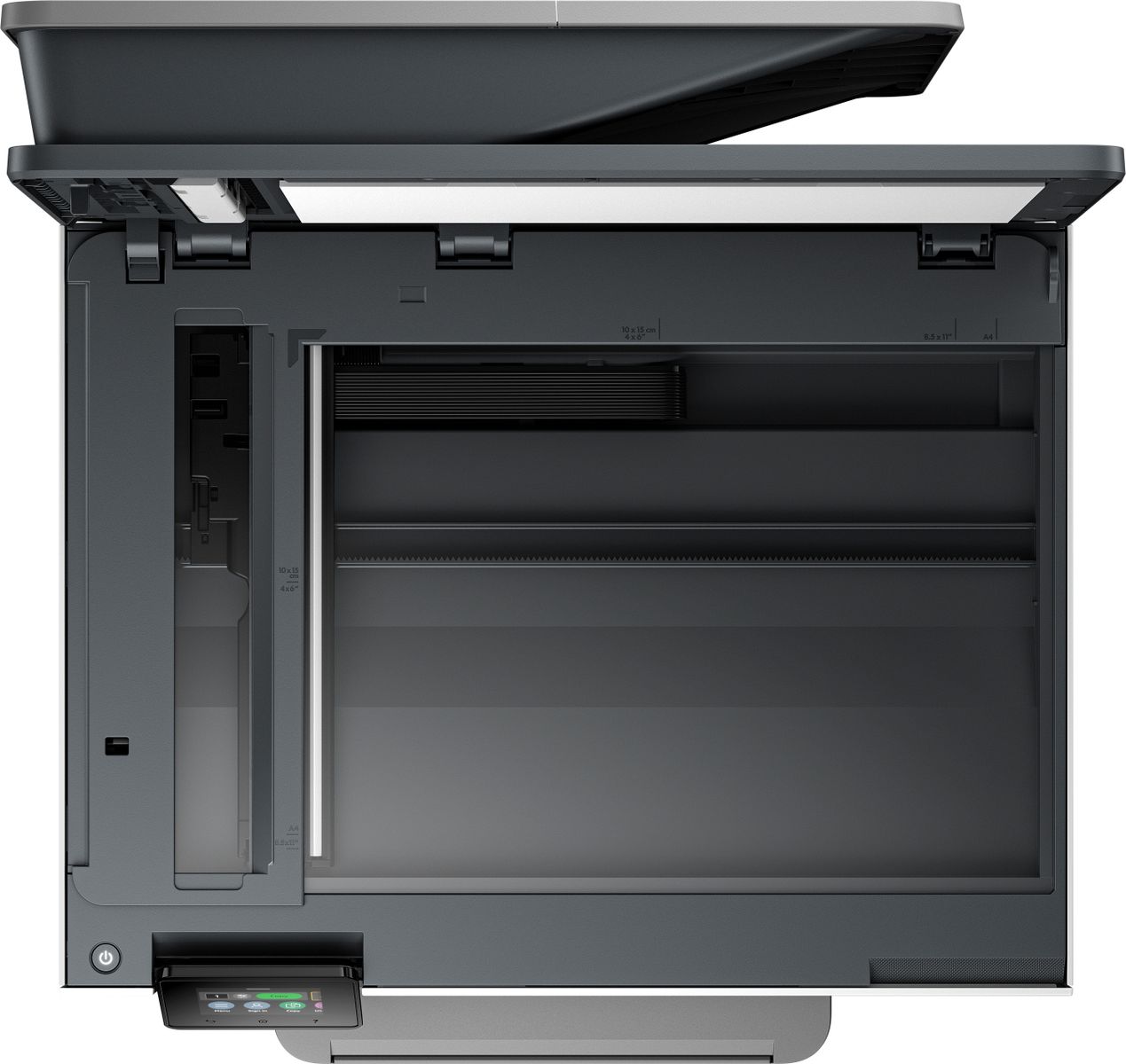 HP OfficeJet Pro Stampante multifunzione 9125e, Colore, Stampante per Piccole e medie imprese, Stampa, copia, scansione, fax, +; idonea a Instant Ink; stampa da smartphone o tablet; touchscreen; Scansione Smart Advance; Instant Paper; porta unità flash USB anteriore; Stampa fronte/retro; scansione fronte/retro; alimentatore automatico di documenti; Fax. Tecnologia di stampa: Getto termico d'inchiostro, Stampa: Stampa a colori, Risoluzione massima: 4800 x 1200 DPI, Velocità di stampa (colore, qualità normale, A4/US Letter): 18 ppm. Copia: Copia a colori, Risoluzione di copia massima: 600 x 600 DPI. Scansione: Scansione a colori, Risoluzione di scansione ottica: 1200 x 1200 DPI. Fax: Fax a colori. Funzione duplex: Stampa, Scansione, Fax. Massimo formato carta serie ISO A: A4. Wi-Fi. Stampa diretta. Colore del prodotto: Grigio