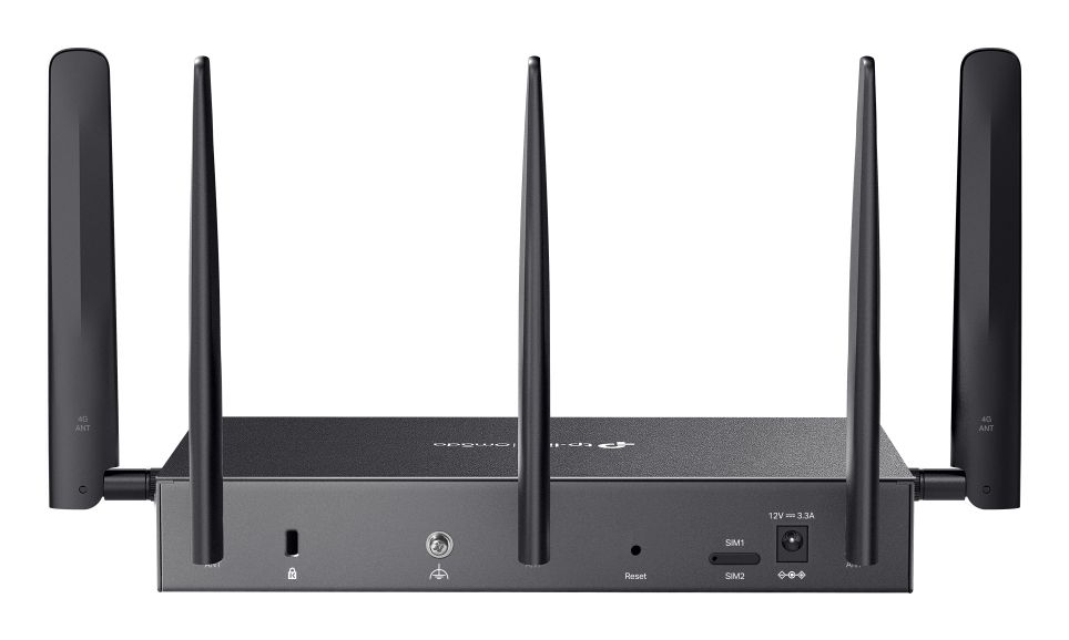 TP-Link Omada DR3650V-4G. Tipo di connessione WAN: RJ-45. Banda Wi-Fi: Dual-band (2.4 GHz/5 GHz), Intervallo di trasferimento dei dati WLAN (max): 2402 Mbit/s, Standard Wi-Fi: 802.11a, 802.11b, 802.11g, Wi-Fi 4 (802.11n), Wi-Fi 5 (802.11ac), Wi-Fi 6 (802.11ax). Tipo di interfaccia LAN Ethernet: Gigabit Ethernet, Velocità trasferimento Ethernet LAN: 10,100,1000 Mbit/s, Tecnologia di cablaggio: 10/100/1000Base-T(X). Algoritmi di sicurezza supportati: WPA-Enterprise, WPA-Personal, WPA2-Enterprise, WPA2-Personal, WPA3-Enterprise, WPA3-Personal, Funzionalità NAT: One-to-One NAT Multi-Net NAT Virtual Server Port Triggering1 NAT-DMZ FTP/H.323/SIP/IPSec/PPTP ALG.... Codec voce: G.711a, G.711ulaw, G.722, G.726, G.729ab