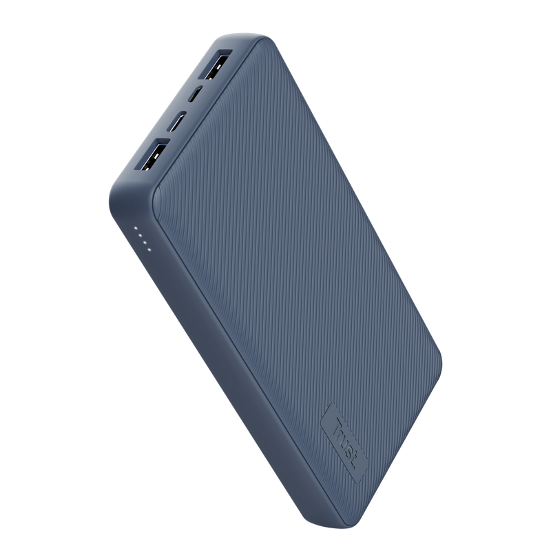 Trust Primo. Capacità della batteria: 20000 mAh, Tecnologia batteria: Ioni di Litio, Voltaggio della batteria: 3,7 V. Porte di uscita USB di tipo A: 2, Quantità di porte USB Tipo C: 1. Potenza di uscita totale: 15 W. Colore del prodotto: Blu