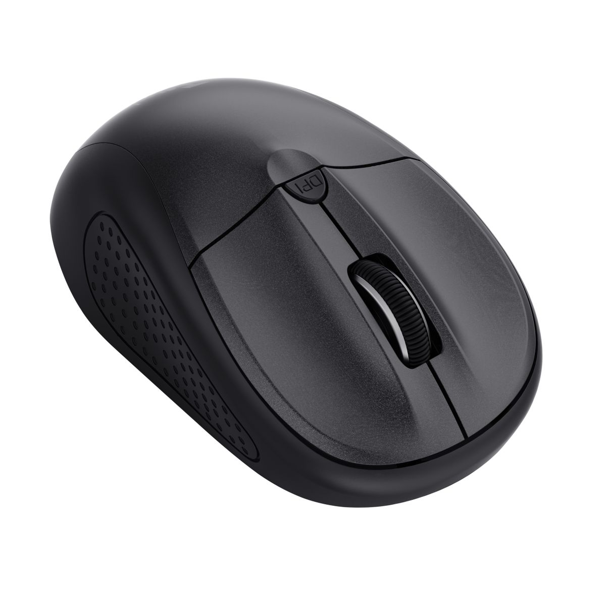 Trust Primo. Fattore di forma: Ambidestro. Tecnologia di rilevamento del movimento: Ottico, Interfaccia dispositivo: Bluetooth, Risoluzione movimento: 1600 DPI, Tipo di pulsanti: Tasti premuti, Numero di tasti: 3, Tipo di scorimmento: Rotella. Alimentazione: Batterie. Colore del prodotto: Nero