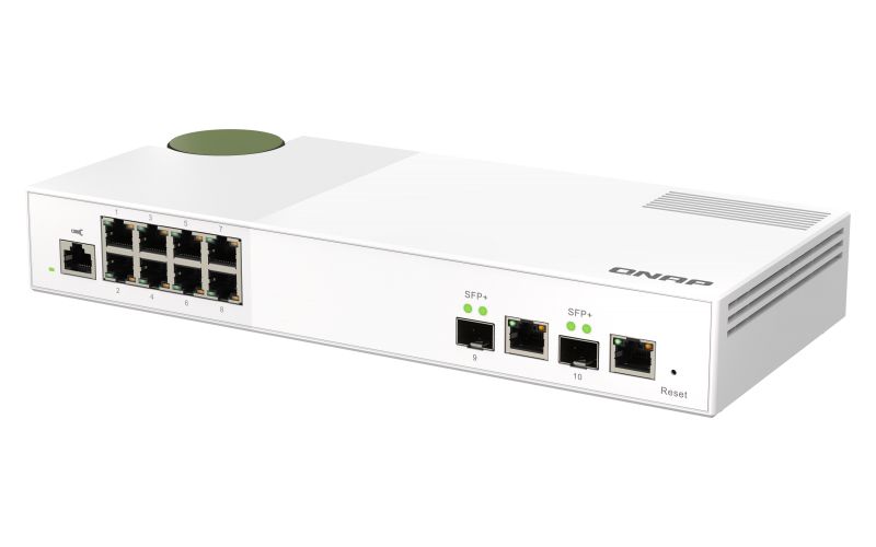 QNAP QSW-M2108-2C. Tipo interruttore: Gestito, Livello del commutatore: L2. Tipo di porte RJ-45: 2.5G Ethernet (100/1000/2500), Quantità di porte RJ-45: 8, Console port: RJ-45. Full duplex. Dimensioni tavola MAC: 16000 voci, Capacità di commutazione: 80 Gbit/s. Standard di rete: IEEE 802.1Q, IEEE 802.1ab, IEEE 802.1p, IEEE 802.1w, IEEE 802.3, IEEE 802.3ab, IEEE 802.3ad, IEEE.... Voltaggio input DC: 12 V
