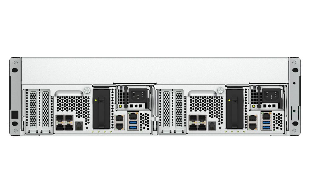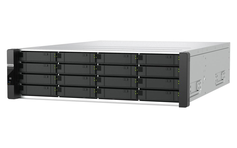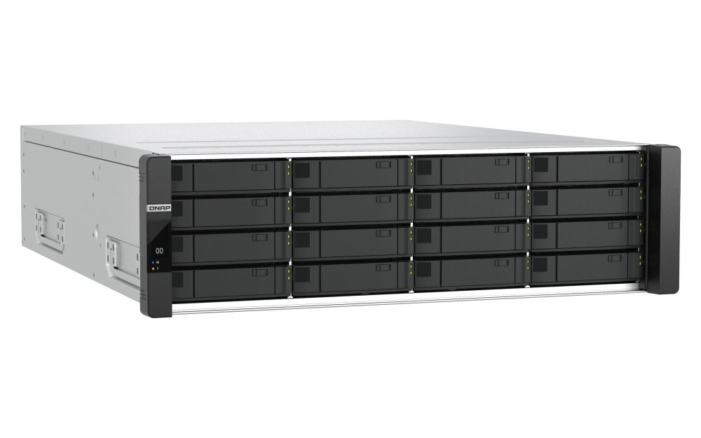 QNAP ES1686dc R2. Tipo: NAS. Tipo di case: Armadio (3U). Classe del dispositivo: Grandi Aziende. Famiglia processore: Intel® Xeon® D, Modello del processore: D-2142IT, Frequenza del processore: 1,9 GHz. RAM installata: 64 GB, Tipo di RAM: DDR4. Capacità di archiviazione totale installata: 0 TB. Sistema operativo incluso: QNAP QES