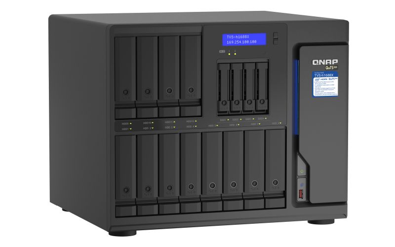 QNAP TVS-h1688X. Tipi di unità di archiviazione supportate: HDD & SSD, Interfacce dell'unità di archiviazione supportate: Seriale ATA II, Serial ATA III, Dimensioni dei dispositivi di archivio supportati: 2.5,3.5,M.2. Famiglia processore: Intel® Xeon®, Produttore processore: Intel, Modello del processore: W-1250. RAM installata: 32 GB, Tipo di RAM: DDR4, Massima RAM supportata: 128 GB. Velocità trasferimento Ethernet LAN: 100,1000,2500,10000 Mbit/s, Velocità di trasmissione Ethernet LAN supportata (max): 10000 Mbit/s, Tecnologia Ethernet su cavi in rame: 10GBASE-T. Versione HDMI: 1.4b