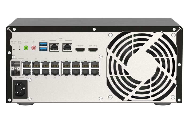 QNAP QGD-3014-16PT-8G. Tipo interruttore: Gestito. Tipo di porte RJ-45: Gigabit Ethernet (10/100/1000), Quantità di porte RJ-45: 14. Full duplex. Dimensioni tavola MAC: 8000 voci, Capacità di commutazione: 32 Gbit/s. Standard di rete: IEEE 802.1Q, IEEE 802.1p, IEEE 802.3ab, IEEE 802.3af, IEEE 802.3at, IEEE 802.3az, IEEE 802.3u,.... Supporto Power over Ethernet (PoE). Montaggio rack