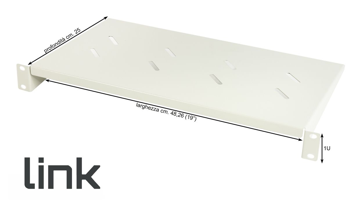 LINK RIPIANO PER ARMADIO 19" 1 UNITA' PROFONDITA' 250 MM. (UNIVERSALE) COLORE GRIGIO. Tipo: Mensola per scaffale, Materiale della scocca: Acciaio, Colore del prodotto: Grigio chiaro. Peso: 1,4 kg