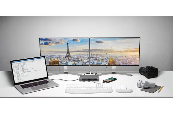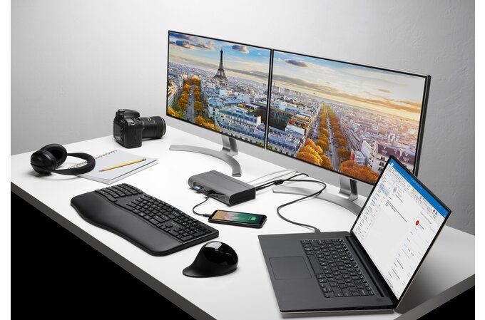 Kensington Docking station ibrida SD5600T Thunderbolt™ 3 e USB-C 4K doppio - 96 W PD –Windows/macOS. Tipo di connettore: USB tipo-C. Peso: 835 g. Colore del prodotto: Grigio
