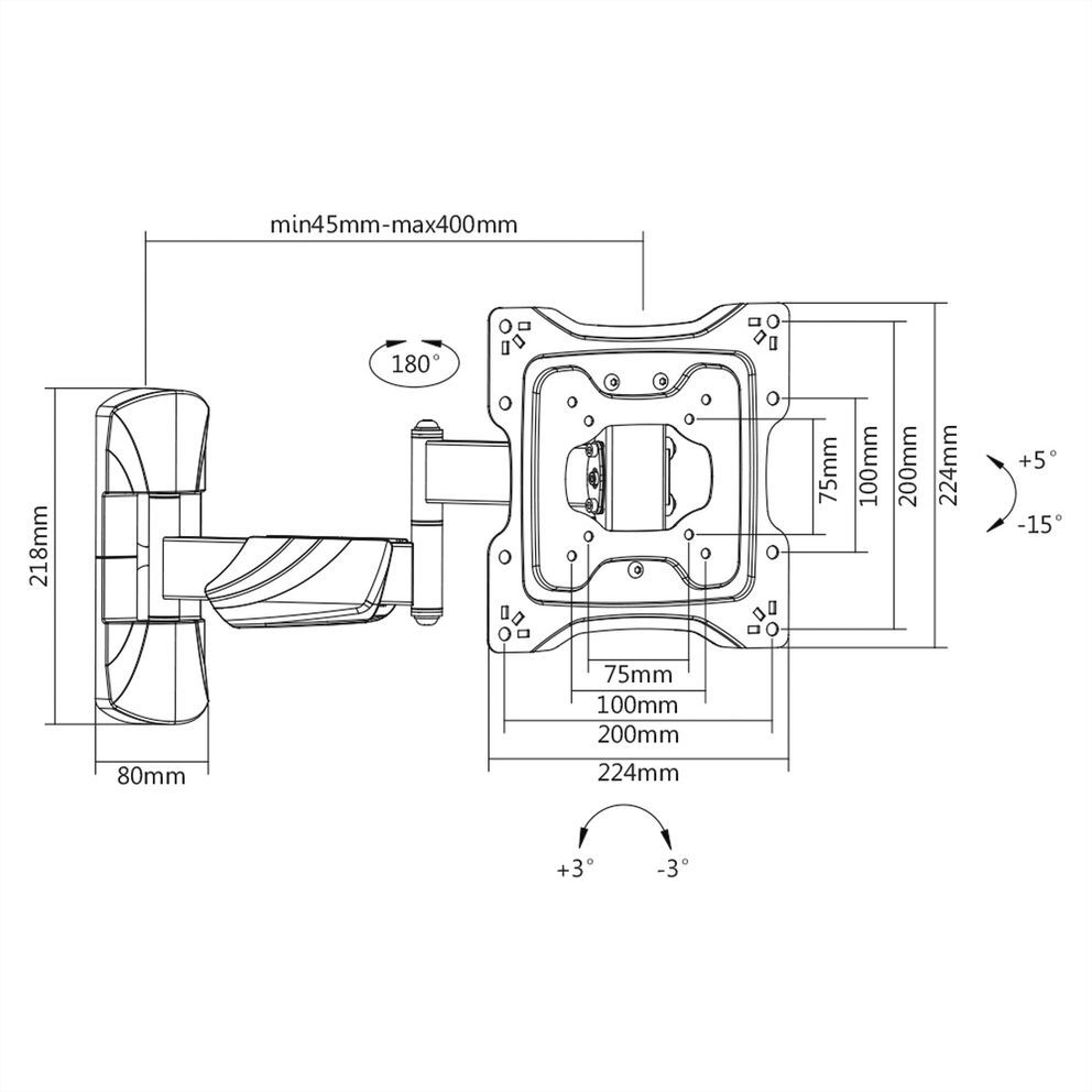ITB RO17.99.1143. Montaggio: Viti, Peso massimo (capacità): 25 kg, Capienza minima dimensioni dello schermo: 81,3 cm (32"), Capienza massima dimensioni dello schermo: 139,7 cm (55"), Compatibilità interfaccia di montaggio (min): 200 x 200 mm, Compatibilità interfaccia di montaggio (max): 400 x 400 mm. Angolo di rotazione: 90 - -90°, Inclinazione: 5 - -15°. Colore del prodotto: Nero