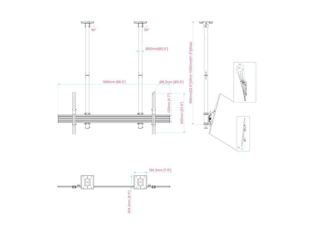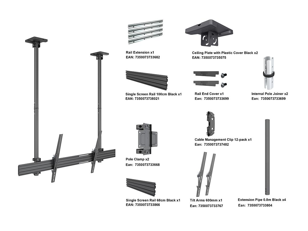 Multibrackets 4561. Peso massimo (capacità): 80 kg, Capienza minima dimensioni dello schermo: 190,5 cm (75"), Capienza massima dimensioni dello schermo: 2,79 m (110"), Compatibilità interfaccia di montaggio (min): 100 x 100 mm, Compatibilità interfaccia di montaggio (max): 1600 x 600 mm. Inclinazione: -6 - 15°. Colore del prodotto: Nero