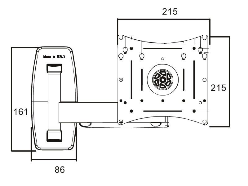ITB OM06174. Peso massimo (capacità): 25 kg, Capienza minima dimensioni dello schermo: 25,4 cm (10"), Capienza massima dimensioni dello schermo: 101,6 cm (40"), Compatibilità interfaccia di montaggio (min): 50 x 50 mm, Compatibilità interfaccia di montaggio (max): 200 x 100 mm. Inclinazione: 0 - 20°, Angolo di rotazione: 180°, Distanza dalla parete (min): 5 cm, Distanza dal muro (massima): 28,8 cm. Colore del prodotto: Nero