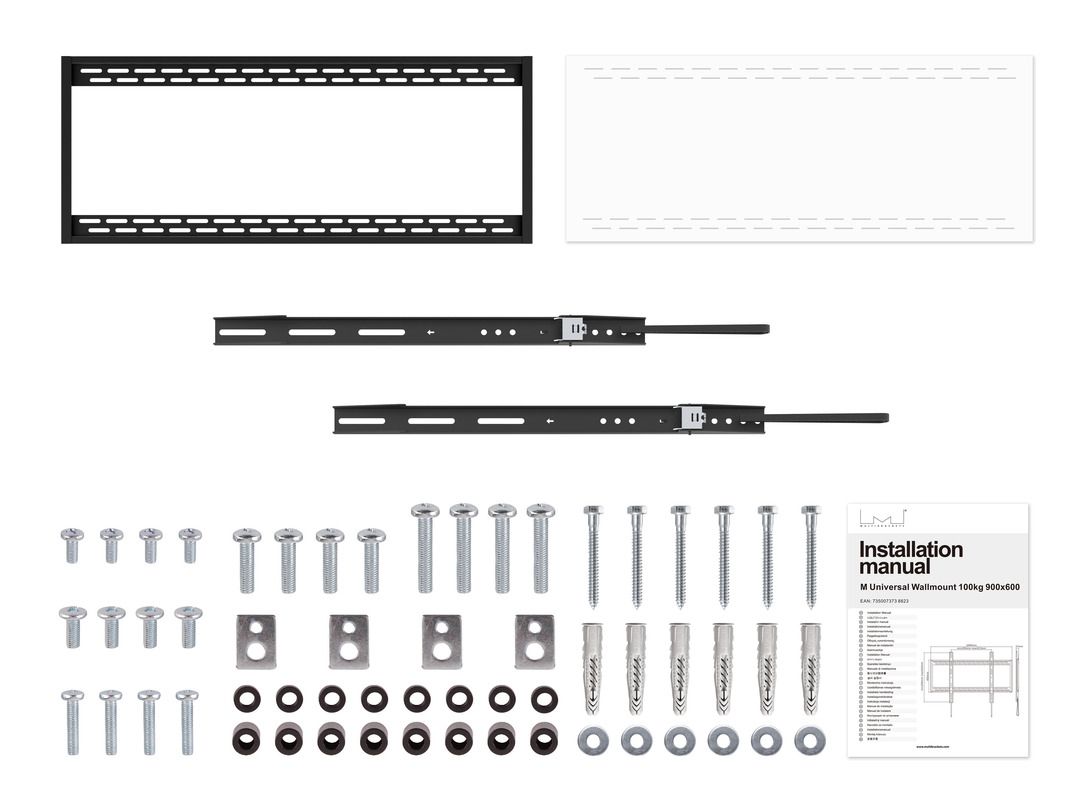 ITB MB8823. Peso massimo (capacità): 100 kg, Capienza minima dimensioni dello schermo: 152,4 cm (60"), Capienza massima dimensioni dello schermo: 2,54 m (100"), Compatibilità interfaccia di montaggio (min): 900 x 600 mm. Distanza dal muro (massima): 3,2 cm. Colore del prodotto: Nero