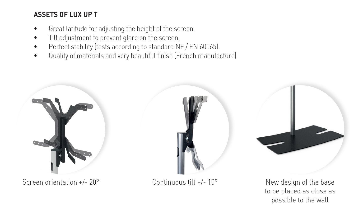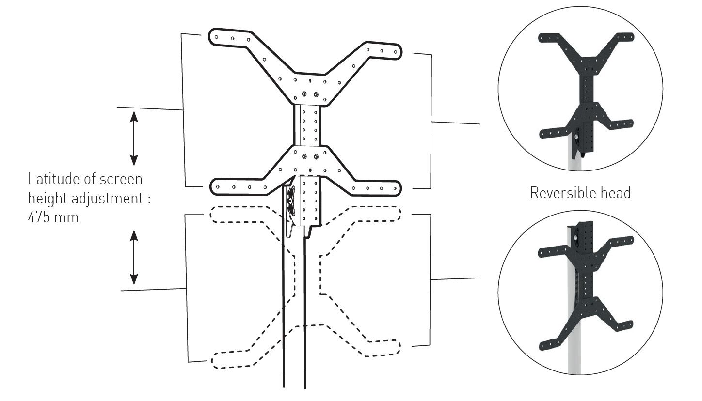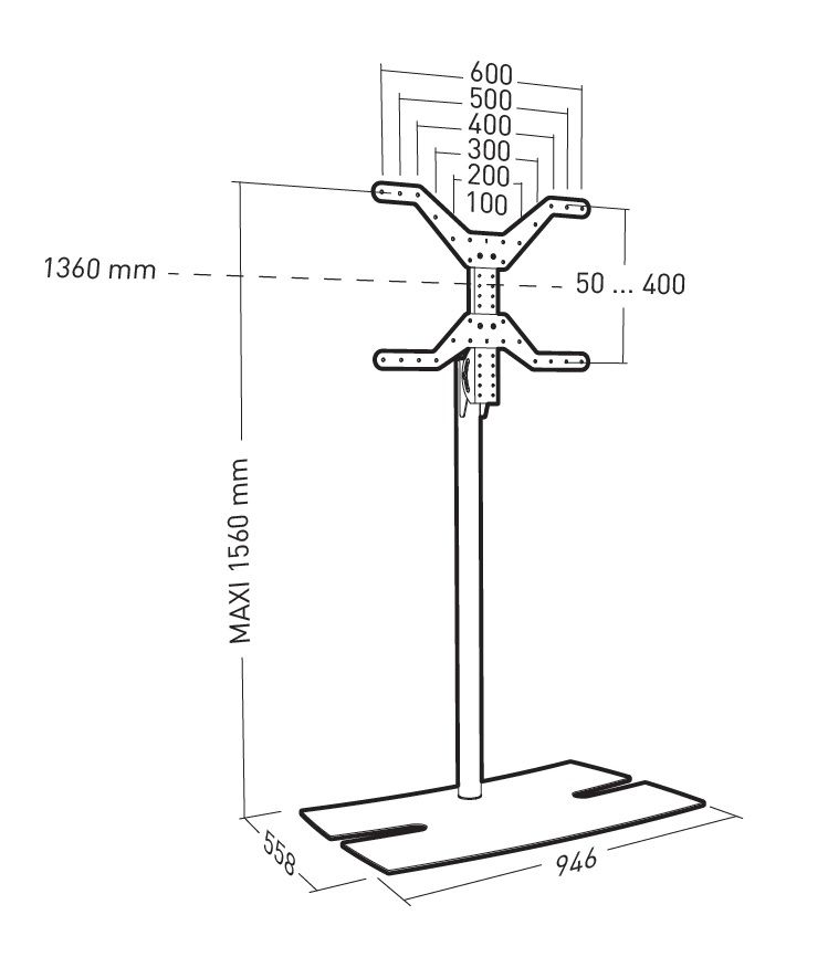 ITB ER038352. Montaggio: Libera installazione, Peso massimo (capacità): 50 kg, Capienza minima dimensioni dello schermo: 101,6 cm (40"), Capienza massima dimensioni dello schermo: 190,5 cm (75"), Compatibilità interfaccia di montaggio (min): 600 x 400 mm, Compatibilità interfaccia di montaggio (max): 600 x 400 mm. Regolazione altezza, Angolo di rotazione: 20 - -20°, Inclinazione: 10 - -10°. Colore del prodotto: Nero