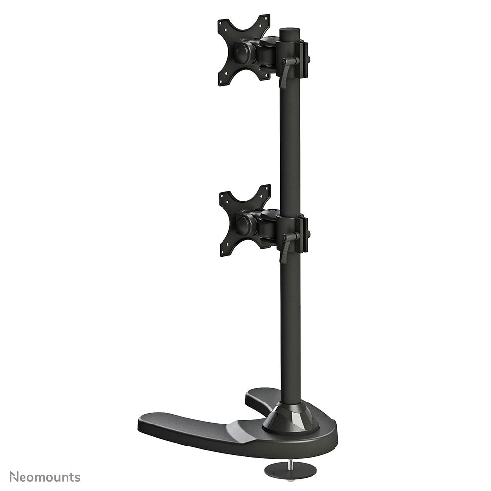 Neomounts Supporto da scrivania per monitor. Peso massimo (capacità): 6 kg, Capienza minima dimensioni dello schermo: 25,4 cm (10"), Capienza massima dimensioni dello schermo: 68,6 cm (27"), Compatibilità interfaccia di montaggio (min): 75 x 75 mm, Compatibilità interfaccia di montaggio (max): 100 x 100 mm. Regolazione altezza, Inclinazione: 0 - 180°. Colore del prodotto: Nero