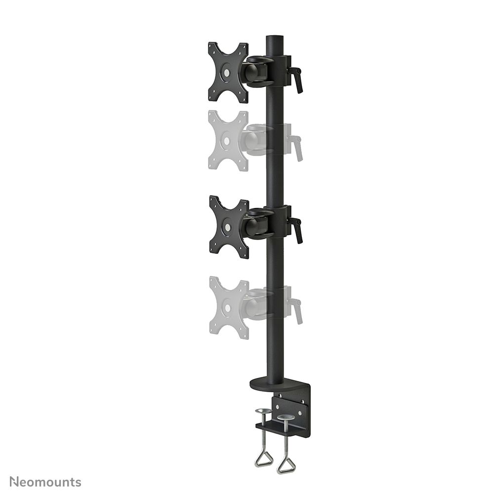 Neomounts Supporto da scrivania per monitor. Montaggio: Morsa, Peso massimo (capacità): 6 kg, Capienza minima dimensioni dello schermo: 25,4 cm (10"), Capienza massima dimensioni dello schermo: 68,6 cm (27"), Compatibilità interfaccia di montaggio (min): 75 x 75 mm, Compatibilità interfaccia di montaggio (max): 100 x 100 mm. Regolazione altezza, Inclinazione: 0 - 180°. Colore del prodotto: Nero