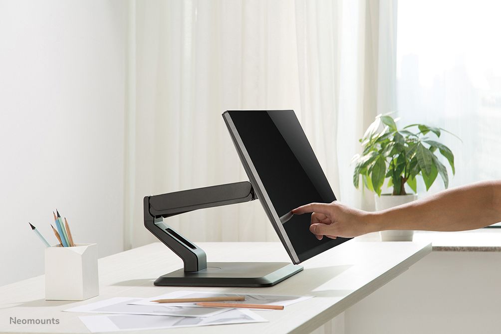 Neomounts Supporto da scrivania per monitor. Montaggio: Libera installazione, Peso massimo (capacità): 10 kg, Capienza minima dimensioni dello schermo: 38,1 cm (15"), Capienza massima dimensioni dello schermo: 81,3 cm (32"), Compatibilità interfaccia di montaggio (min): 75 x 75 mm, Compatibilità interfaccia di montaggio (max): 100 x 100 mm. Regolazione altezza, Inclinazione: 0 - 180°. Colore del prodotto: Nero