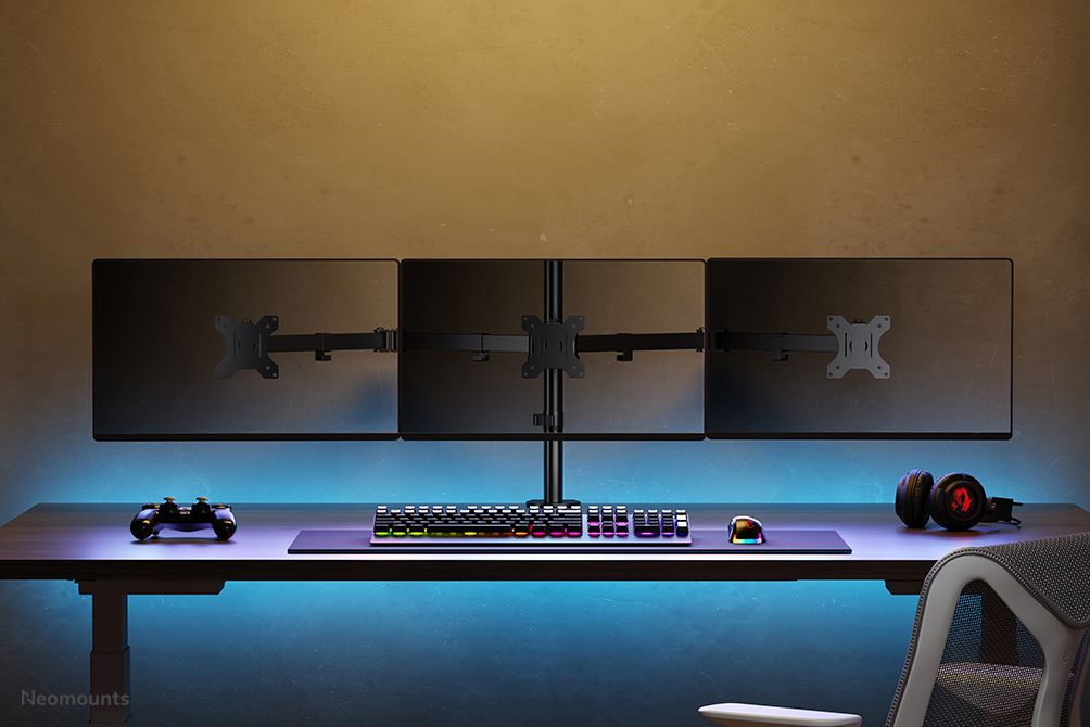Neomounts Supporto da scrivania per monitor. Montaggio: Morsa/Bullone di ancoraggio, Peso massimo (capacità): 6 kg, Capienza minima dimensioni dello schermo: 25,4 cm (10"), Capienza massima dimensioni dello schermo: 68,6 cm (27"), Compatibilità interfaccia di montaggio (min): 75 x 75 mm, Compatibilità interfaccia di montaggio (max): 100 x 100 mm. Regolazione altezza, Inclinazione: 0 - 90°. Colore del prodotto: Nero