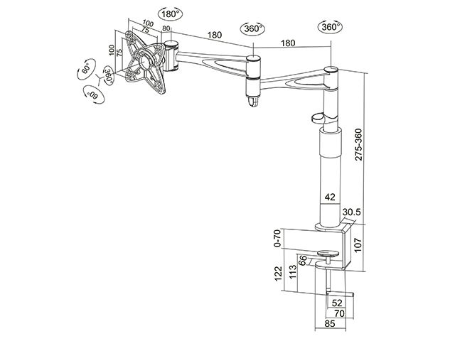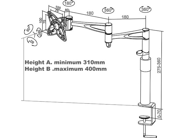 ITB MB0953. Montaggio: Bullone di ancoraggio, Peso massimo (capacità): 10 kg, Capienza minima dimensioni dello schermo: 25,4 cm (10"), Capienza massima dimensioni dello schermo: 61 cm (24"), Compatibilità interfaccia di montaggio (min): 75 x 75 mm, Compatibilità interfaccia di montaggio (max): 100 x 100 mm. Regolazione altezza, Inclinazione: -30 - 30°. Colore del prodotto: Nero