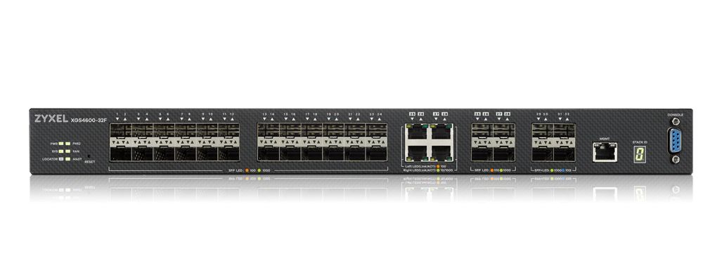 Zyxel XGS4600-32F. Tipo interruttore: Gestito, Livello del commutatore: L3. Console port: RS-232. Dimensioni tavola MAC: 32000 voci, Capacità di commutazione: 136 Gbit/s. Standard di rete: IEEE 802.1D, IEEE 802.1Q, IEEE 802.1ad, IEEE 802.1p, IEEE 802.1s, IEEE 802.1w, IEEE 802.1x, IEEE.... Montaggio rack