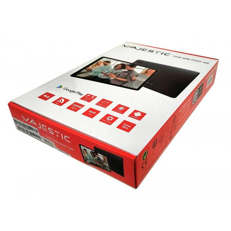 New Majestic TAB 918 PRO 4G. Dimensioni schermo: 26,4 cm (10.4"), Risoluzione del display: 2000 x 1200 Pixel. Capacità memoria interna: 128 GB. Frequenza del processore: 1,6 GHz, Modello del processore: T606. RAM installata: 6 GB. Risoluzione fotocamera posteriore (numerico): 8 MP, Tipo di fotocamera posteriore: Doppia fotocamera, Risoluzione fotocamera frontale (numerico): 5 MP. Wi-Fi standard: Wi-Fi 5 (802.11ac). Assistenza funzione GPS (A-GPS). Lettore di schede integrato. Peso: 490 g. Sistema operativo incluso: Android 13. Colore del prodotto: Nero