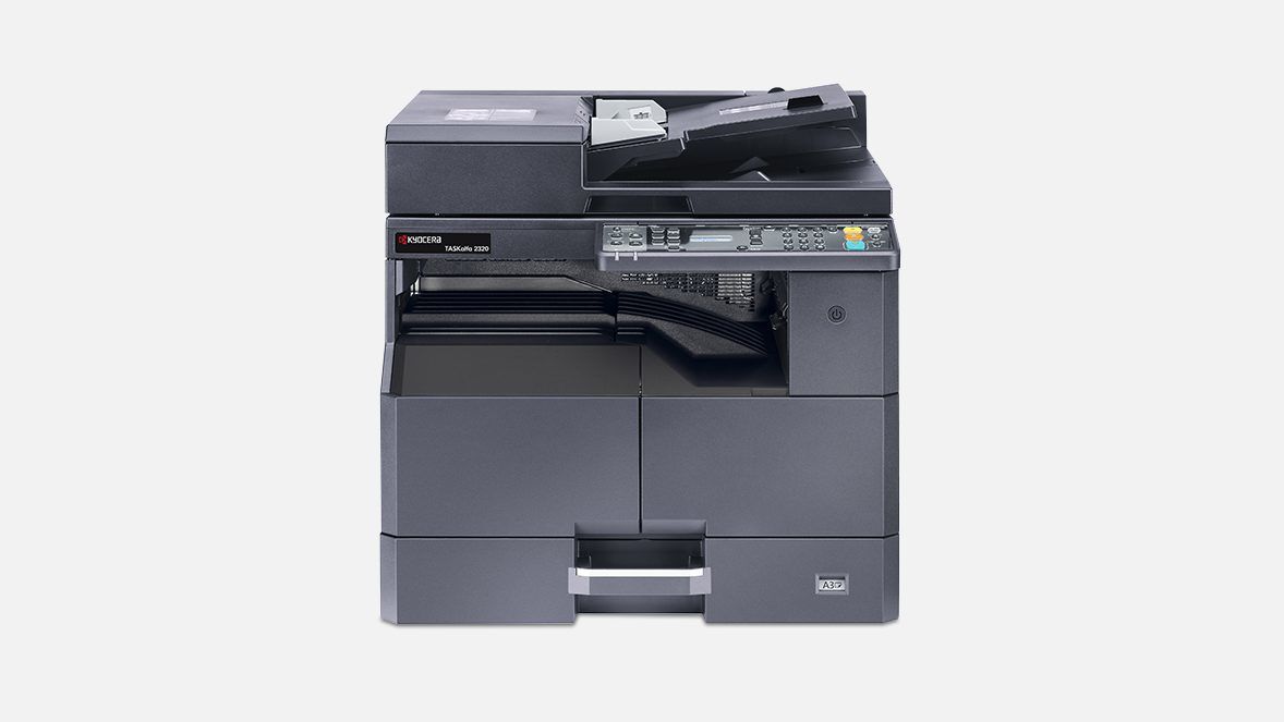 TASKalfa 2320 SISTEMA MULTIFUNZIONE MONOCROMATICO FORMATO A3 > Multifunzione digitale laser monocromatico 23 ppm in formato A4, 10 ppm in formato A3 (copia,stampa e scansione a colori locale) > Pannello di controllo con Display LCD a 2 linee > Memoria 256 MB > Risoluzione: 600x600 dpi (copia, scansione) Fast 1200 (1800x600 dpi stampa) > Interfaccia standard: USB 2.0 Hi-Speed > Emulazione: Host based per tutti i sistemi operativi Windows attuali, supporta anche la stampa da sistemi operativi iOS > Processore ARM v5 base core equivalent, 500 MHz > Scanner a colori 600 dpi: funzione scan to mail, scan to Folder via Client Tool > Formati file JPG, BMP, TIFF, PDF, PDF/A > Cassetto carta da 300 fogli, bypass da 100 fogli, massima capacità carta con opzioni 1.300 fogli > Uscita carta 250 fogli face down > Zoom: 25-400% Dotazione standard: Tamburo con garanzia 150.000 stampe o fino a 3 Anni - 1 kit starter toner per 3.000 pagine (copertura 6%) Da aggiungere: Coprioriginali oppure Alimentatore di originali