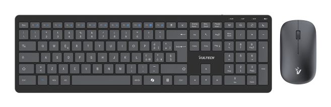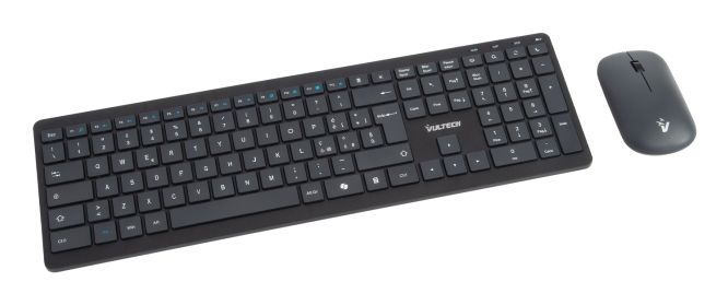 Vultech KM-851W. Fattore di forma tastiera: Full-size (100%), Tecnologia di connessione: Wireless, Interfaccia dispositivo: Wireless a RF + USB, Interruttore a chiave per tastiera: Tasto con meccanismo a forbici, Struttura tastiera: QWERTY, Numero pulsanti tastiera: 112, Utilizzo raccomandato: Ufficio. Colore del prodotto: Nero. Mouse incluso