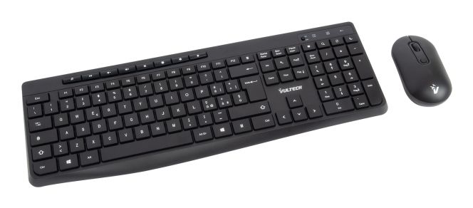 Vultech KM-841W. Fattore di forma tastiera: Full-size (100%), Tecnologia di connessione: Wireless, Interfaccia dispositivo: Wireless a RF + USB, Struttura tastiera: QWERTY, Numero pulsanti tastiera: 118, Utilizzo raccomandato: Ufficio. Colore del prodotto: Nero. Mouse incluso
