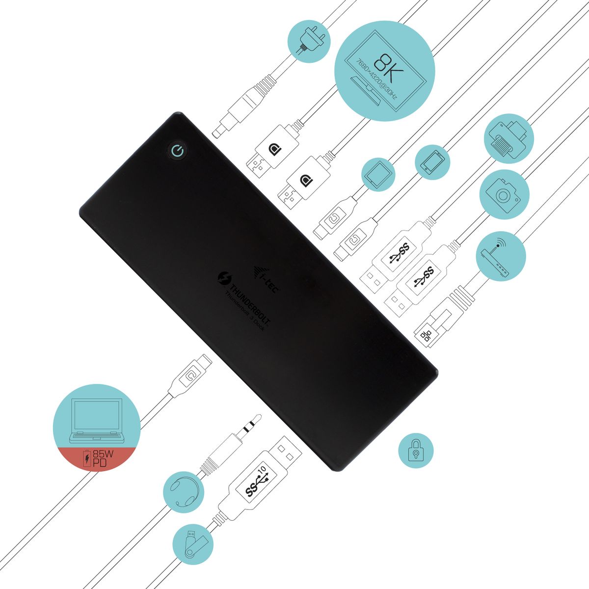 i-tec Thunderbolt3/USB-C Dual DisplayPort 4K Docking Station + Power Delivery 85W. Tecnologia di connessione: Cablato, Interfaccia host: Thunderbolt 3, Fornitura di alimentazione USB fino a: 85 W. Velocità trasferimento Ethernet LAN: 10,100,1000 Mbit/s. Colore del prodotto: Nero, Velocità di trasferimento dati: 10 Gbit/s, Tipologia HD: 8K Ultra HD. Tipologia alimentazione: AC, Alimentazione: 135 W, Voltaggio di uscita: 20 V. Larghezza: 197 mm, Profondità: 78 mm, Altezza: 31 mm