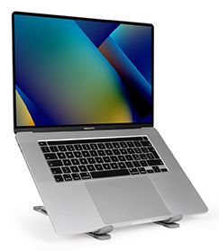Hamlet Tiramisù Max. Tipo di prodotto: Supporto per laptop e tablet, Colore del prodotto: Alluminio, Materiali: Alluminio. Range di regolazione altezza: 18 - 140 mm, Altezza massima: 14 cm. Larghezza: 238 mm, Profondità: 22 mm, Altezza: 45 mm. Tipo di imballo: Scatola. Contenuto della confezione: Custodia da viaggio