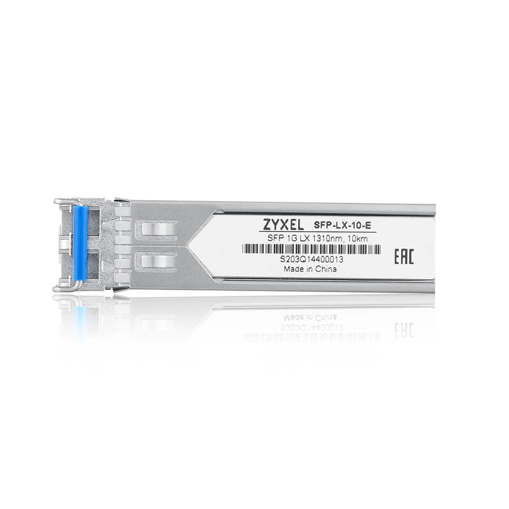 Zyxel SFP-LX-10-E. Tipo di ricetrasmettitore SFP: Fibra ottica, Velocità massima di trasferimento dati: 1000 Mbit/s, Tipo interfaccia: SFP. Colore del prodotto: Acciaio, Paese di origine: Cina, Compatibilità marca: Zyxel. Voltaggio di ingresso: 3.1-3.5 V, Corrente massima: 0,3 A. Larghezza: 13,4 mm, Profondità: 56 mm, Altezza: 12,4 mm