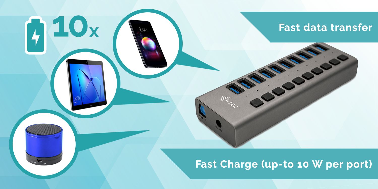 i-tec U3CHARGEHUB10. Tipo di caricatore: Interno, Tipologia alimentazione: AC, Compatibilità caricatore: Universale. Voltaggio di ingresso: 100 - 240 V. Colore del prodotto: Grigio