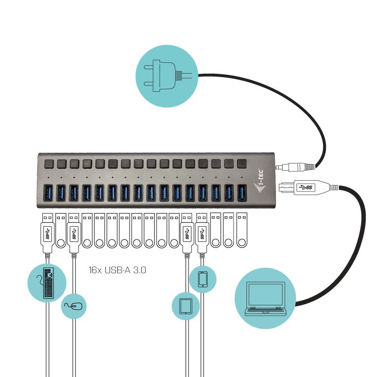 i-tec U3CHARGEHUB16. Tipo di caricatore: Interno, Tipologia alimentazione: AC, Compatibilità caricatore: Universale. Voltaggio di ingresso: 100 - 240 V. Colore del prodotto: Grigio