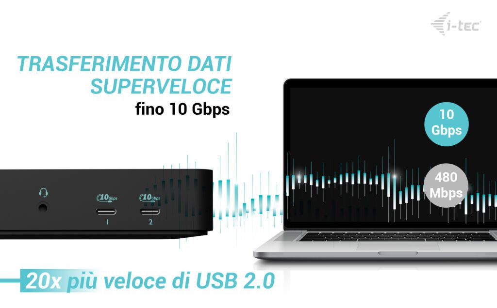 i-tec USB-C Intelligent Triple Display Docking Station + Power Delivery 100W. Tecnologia di connessione: Cablato, Interfaccia host: USB 3.2 Gen 1 (3.1 Gen 1) Type-C, Fornitura di alimentazione USB fino a: 100 W. Velocità trasferimento Ethernet LAN: 10,100,1000 Mbit/s. Colore del prodotto: Nero, Velocità di trasferimento dati: 10 Gbit/s, Tempo massimo di refresh: 360 Hz. Alimentazione: 135 W, Voltaggio di uscita: 20 V, Corrente d'uscita: 6,75 A. Sistema operativo mobile supportato: Android, iPadOS, Altri sistemi operativi supportati: ChromeOS
