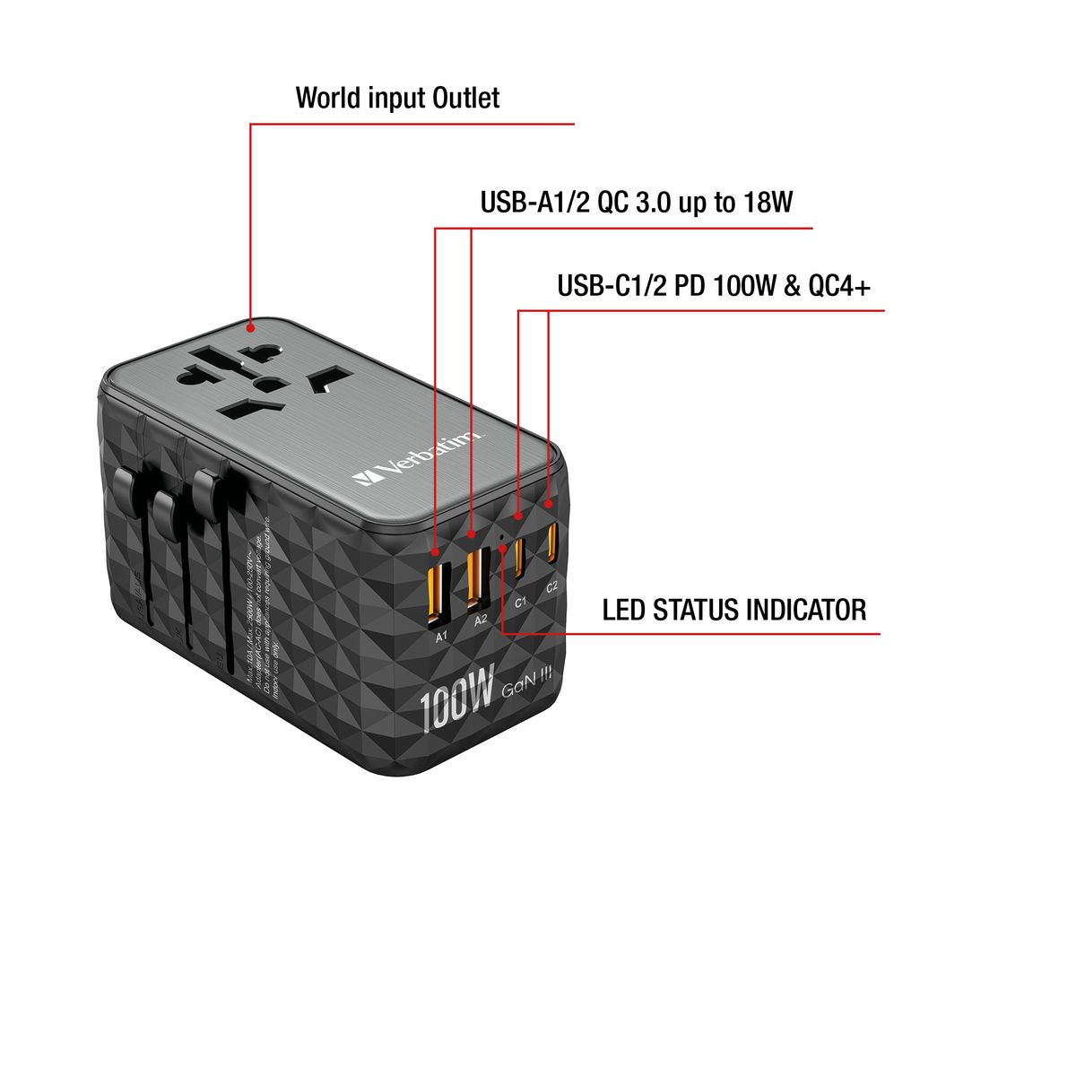 VERBATIM TRAVEL ADAPT.2XUSB-C DP/2XUSB-A 100W QC4+