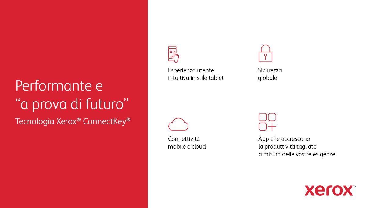 Xerox VersaLink C415 A4 40 ppm Copia/Stampa/Scansione/Fax F/R PS3 PCL5e/6 2 vassoi 251 fogli. Tecnologia di stampa: Laser, Stampa: Stampa a colori, Risoluzione massima: 1200 x 1200 DPI, Velocità di stampa (colore, qualità normale, A4/US Letter): 40 ppm. Copia: Copia a colori, Risoluzione di copia massima: 600 x 600 DPI. Scansione: Scansione a colori, Risoluzione di scansione ottica: 600 x 600 DPI. Fax: Mono fax. Funzione duplex: Copia, Stampa. Massimo formato carta serie ISO A: A4. Stampa diretta. Colore del prodotto: Grigio, Bianco