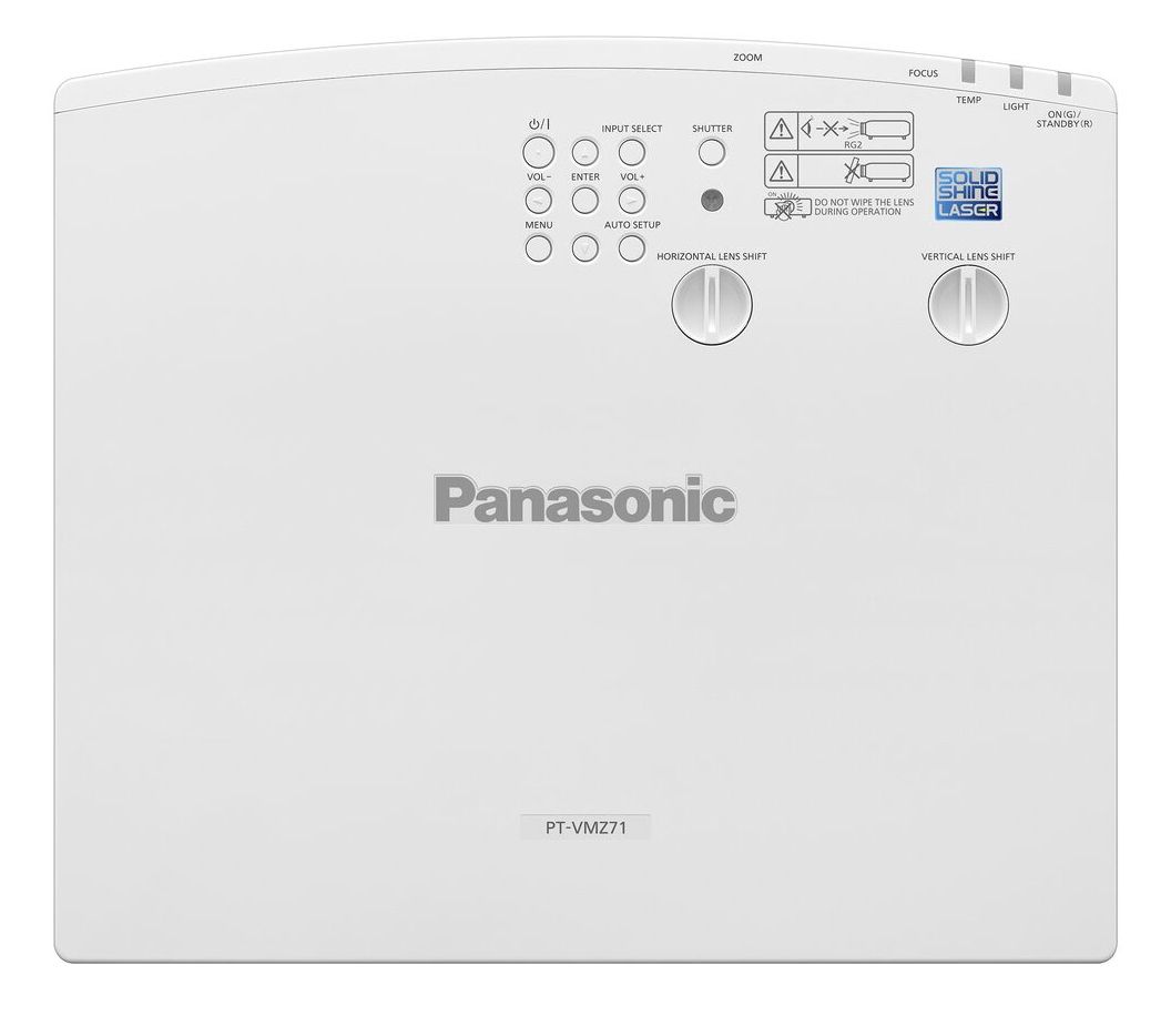 Panasonic PT-VMZ71EJ. Luminosità proiettore: 7000 ANSI lumen, Tecnologia di proiezione: LCD, Risoluzione nativa del proiettore: WUXGA (1920x1200). Tipo di sorgente luminosa: Laser, Durata della sorgente luminosa: 20000 h, Durata della sorgente luminosa (modalità risparmio): 24000 h. Messa a fuoco: Manuale, Lunghezza focale: 15.3 - 24.64 mm, Range di apertura (F-F): 1,6 - 2,12. Tipo interfaccia seriale: RS-232C. Velocità trasferimento Ethernet LAN: 10,100 Mbit/s