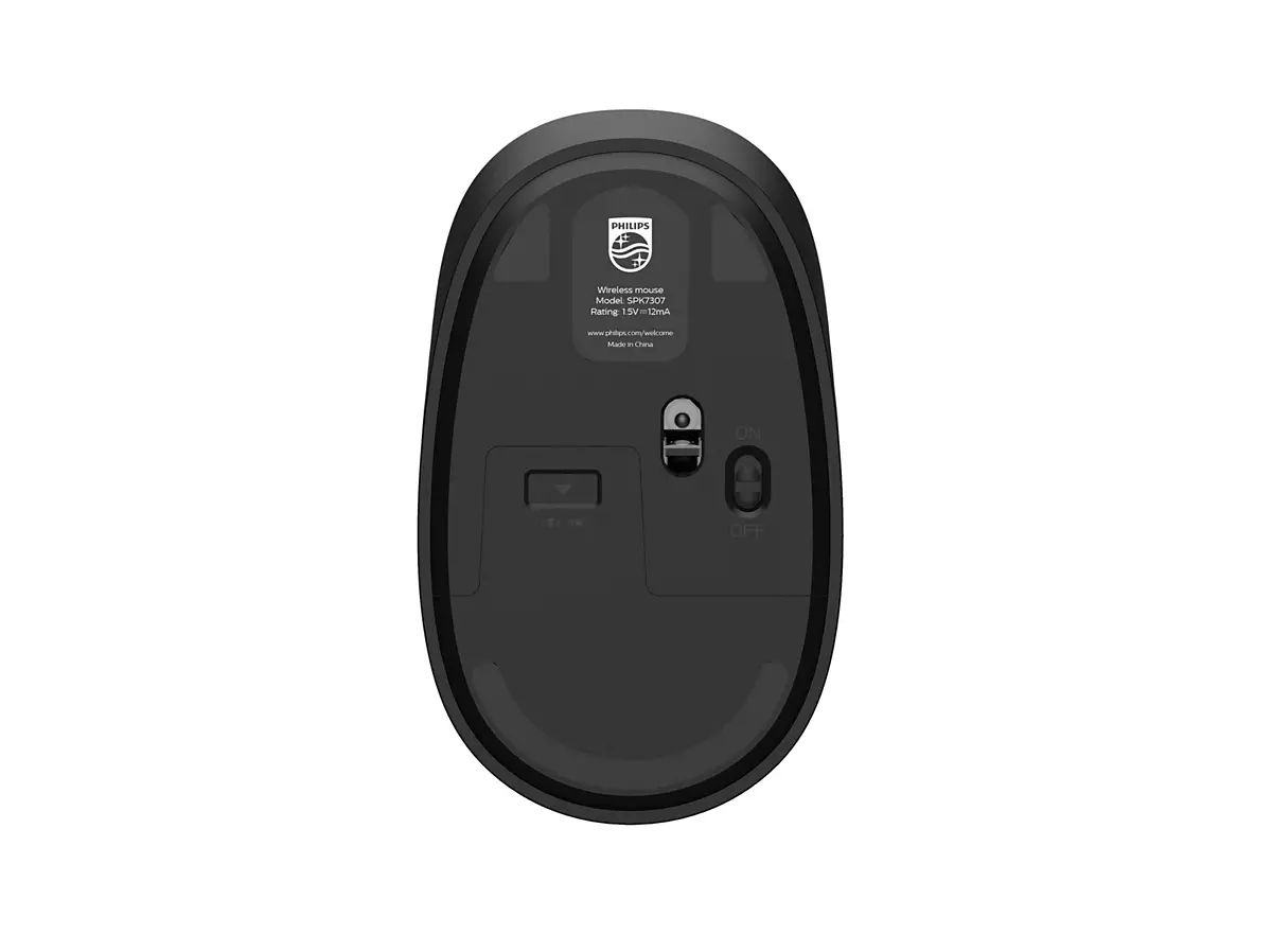 Philips SPK7307B/00. Fattore di forma: Ambidestro. Tecnologia di rilevamento del movimento: Ottico, Interfaccia dispositivo: RF Wireless, Risoluzione movimento: 1600 DPI, Tipo di pulsanti: Tasti premuti, Numero di tasti: 3, Tipo di scorimmento: Rotella. Alimentazione: Batterie. Colore del prodotto: Nero